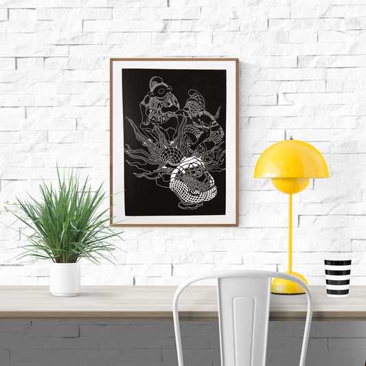 Fabienne Verhulsel is a Belgian artist who lives in Lier, a small town near Antwerp. She loves to experiment and combine surrealist images with emporting quotes, which make her prints unique.
