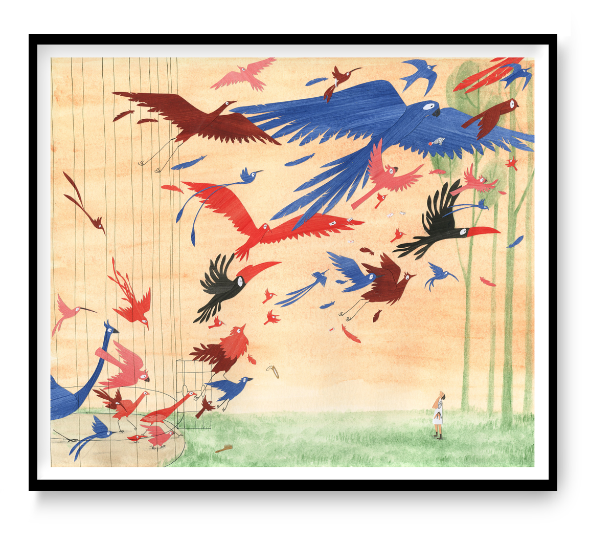 An illustration from the Aviary series. A colorful little accident.