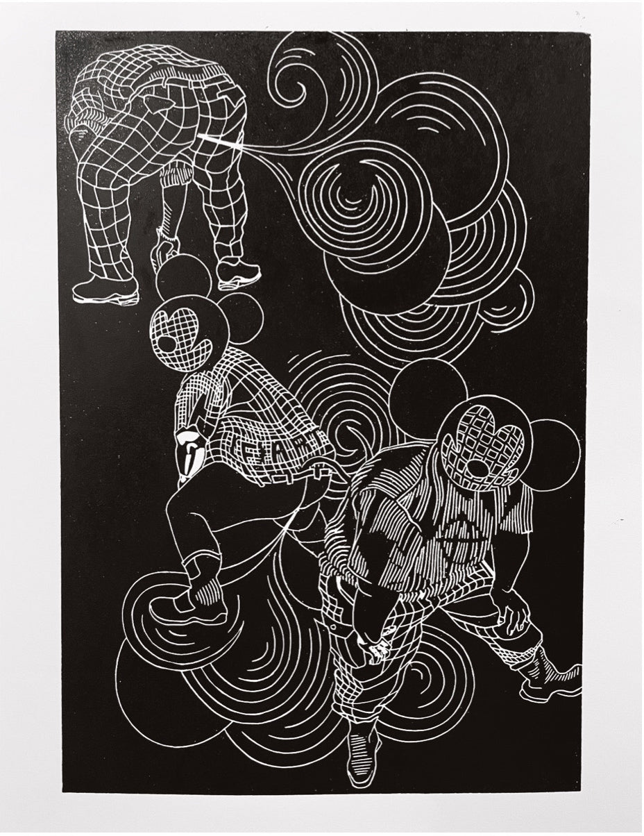 Exclusive and powerful, Fartgang by FAB is a rare linocut art print (limited to 7). A true statement piece for collectors.
