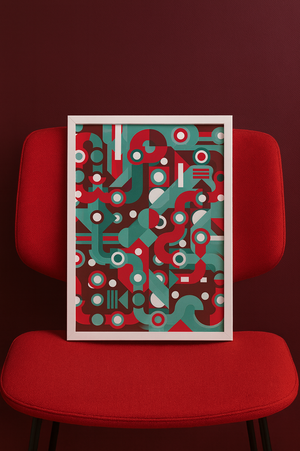 Get lost in color with Route 07 by Studio Frits — a bold maze of teal, red and shapes in motion. This vibrant geometric print turns energy and rhythm into art, bringing instant life to any modern space. Perfect for design lovers who enjoy abstract balance and visual play.