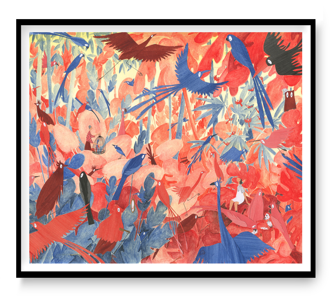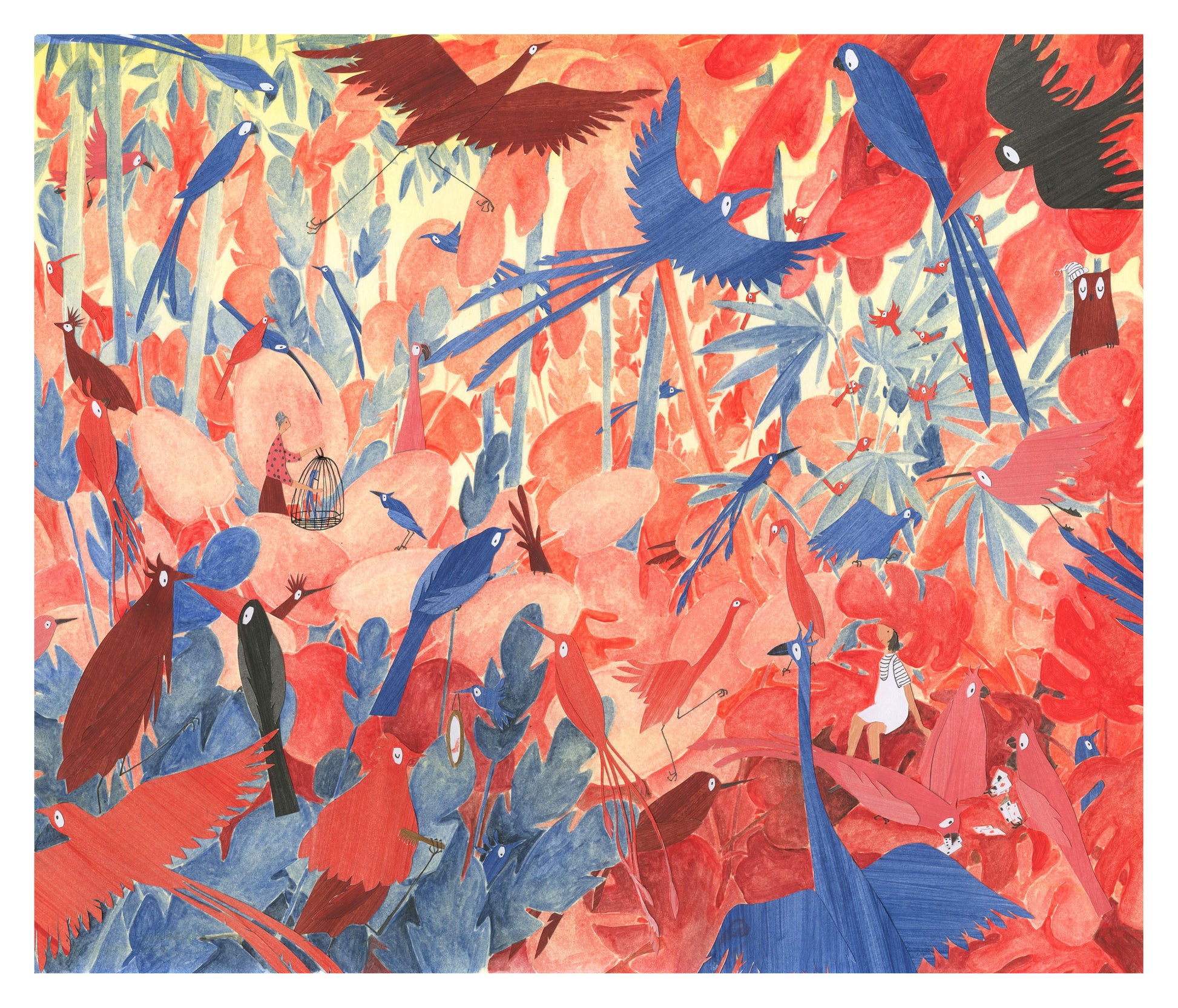 An illustration from the Aviary series. Colorful and chaotic, in which