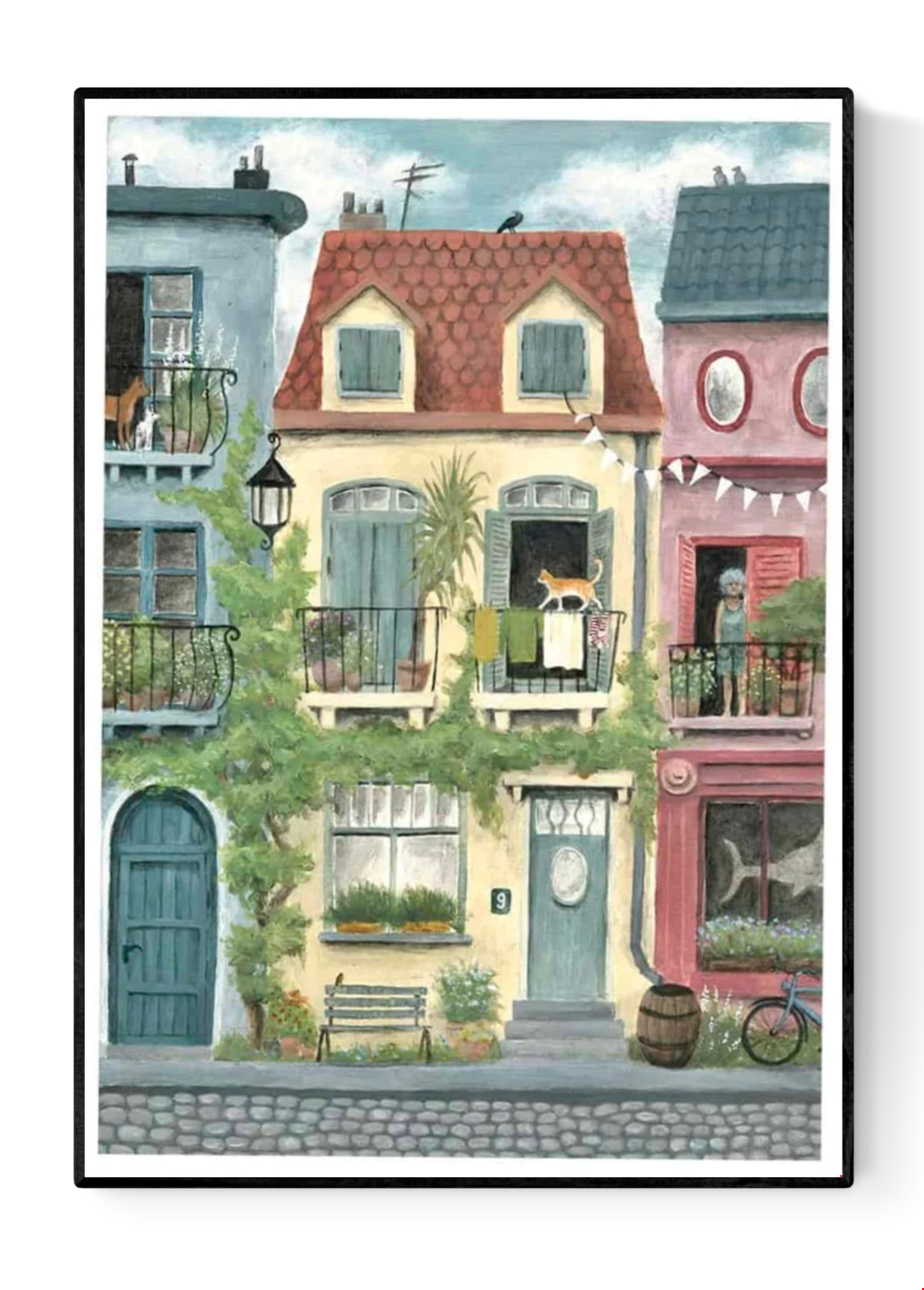 Huizen by Stien van Kerckhoven brings a soft, nostalgic feeling to your walls. A row of colorful houses, full of life and simple beauty, reminds us how lovely ordinary days can be. A print that feels like home.